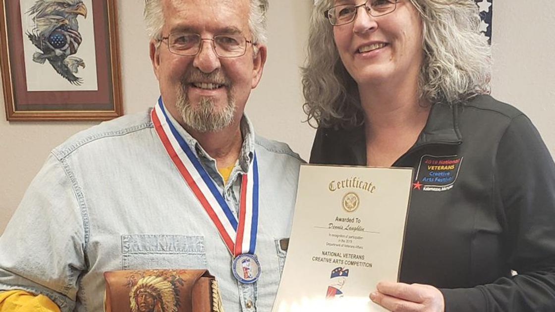 Alliance Veteran and Box Butte County Veterans Service Officer Dennis Laughlin was presented with a silver medal and certificate from the 2019 National Veteran’s Creative Arts Festival. Laughlin qualified for the national festival after winning gold at the 2019 Local BHHCS VA-Hot Springs.