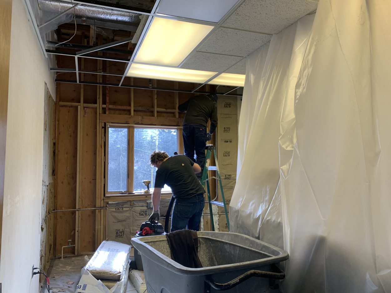 A construction crew is taking care of much needed repairs in the U.S. Customs office of Wrangell’s public safety building in 2020. (June Leffler/ KSTK)